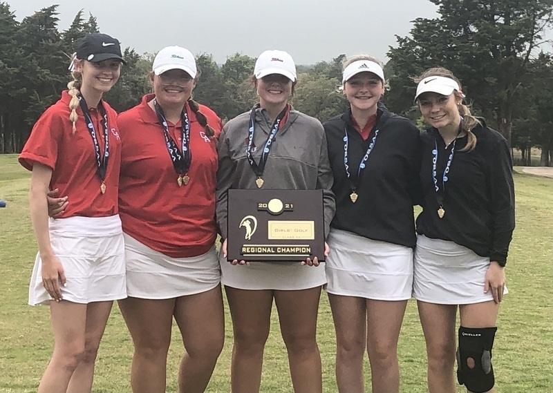 The Carl Albert girls golf team won Class 5A West Regional title today at Aqua Canyon Golf Course in Guthrie. They tied with Altus and won in a playoff.