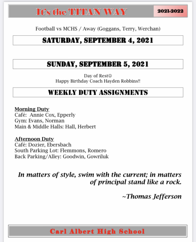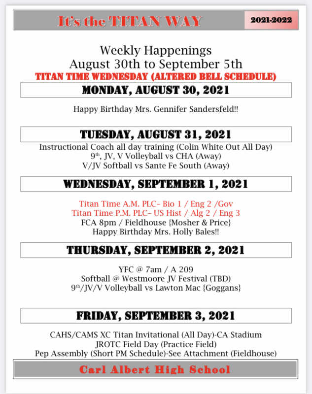Titan Times / Weekly Happenings 9/15 - 9/21