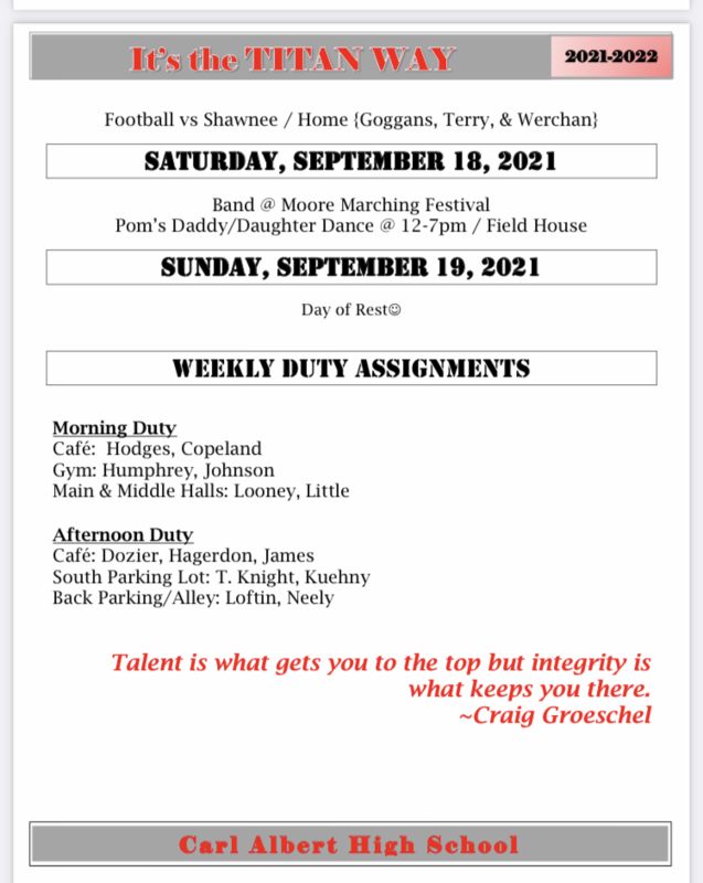 Titan Times / Weekly Happenings 9/15 - 9/21