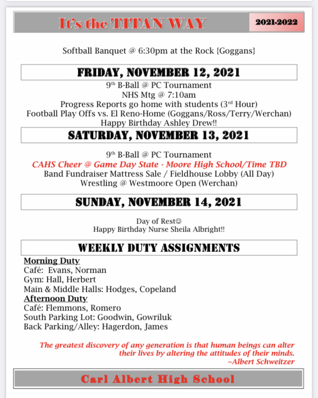 Titan Times / Weekly Happenings 11/10 - 11/16