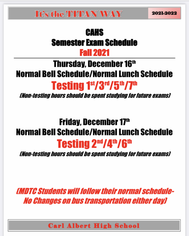 For a pdf copy of the Semester 1 Exam Schedule, click