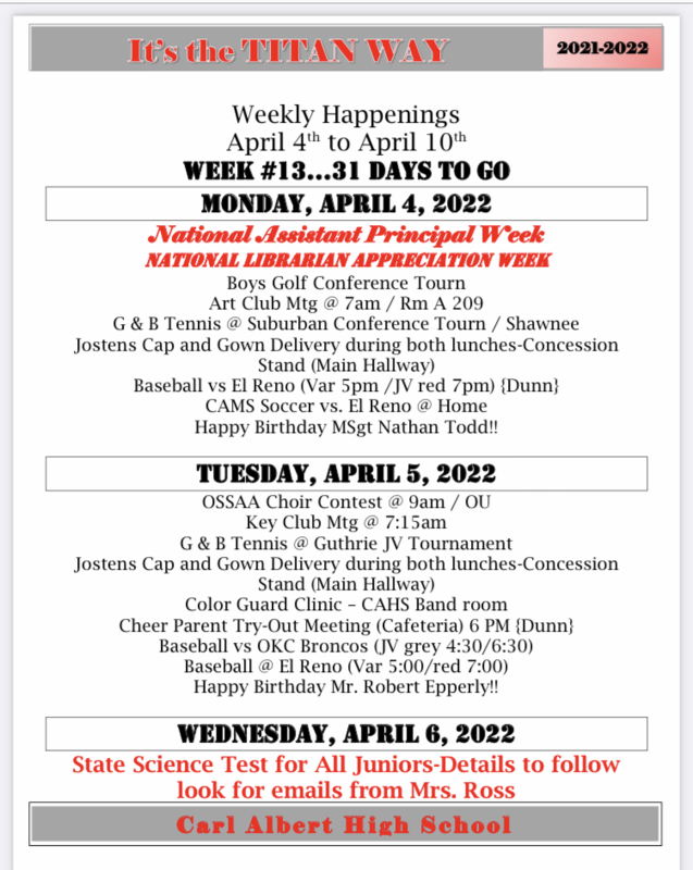Titan Times / Weekly Happenings 4/6 - 4/12
