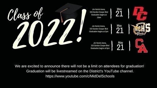 The Carl Albert High School Class of 2022 Graduation Ceremony will be held on Saturday, May 21, 2022 at 6:00 p.m. at the Jim Norick Arena located at 333 Gordon Cooper Blvd, Oklahoma City.