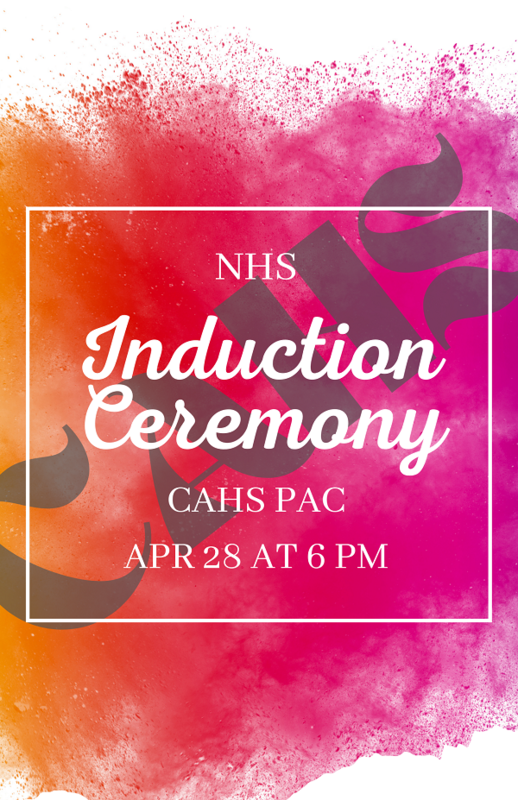 The CAHS National Honor Society Induction Ceremony will be held on Thursday, April 28th at 6pm in the CAHS PAC.