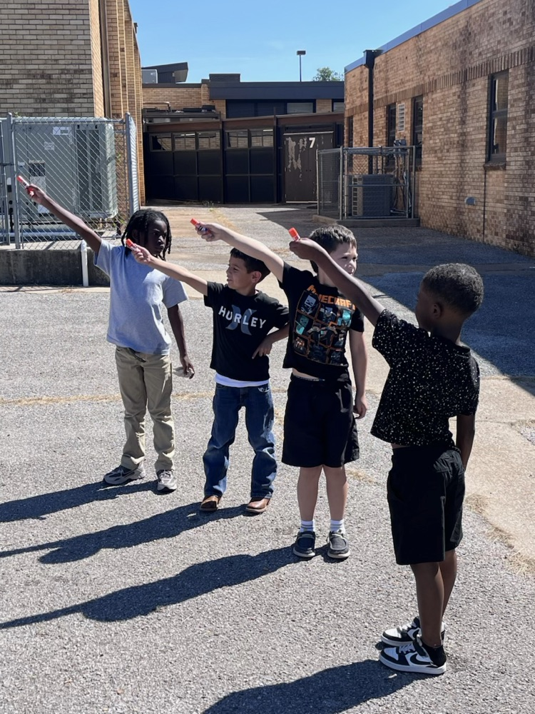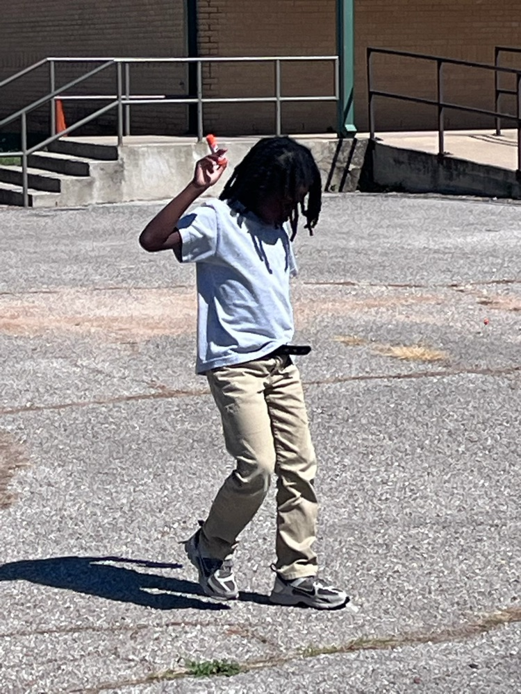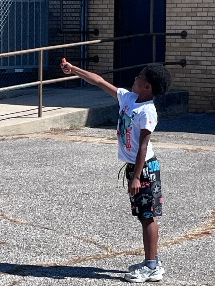 The experiment consisted of putting water and alka seltzer in an empty glue stick. After a few seconds, the water and tablet caused gas to build up and "POP" the cap off towards the sky. We were very impressed by their attention to steps and safety. 👩🏻🔬🧑🏽🔬