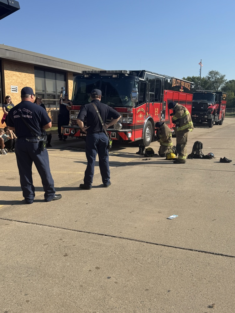 We would like to thank Del City Fire Department for visiting with our Pre-K and Abilities students this morning! They did a presentation on what firefighters do, explained their gear, and raced to put it on. Then, students had the opportunity to walk around the trucks and see all the moving parts of fire engines. 🚒