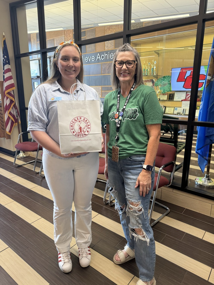 Thank you to Chicken Salad Chick for visiting us this morning.. with treats! The Mustang staff is excited to have you joining our community. 💚🐎