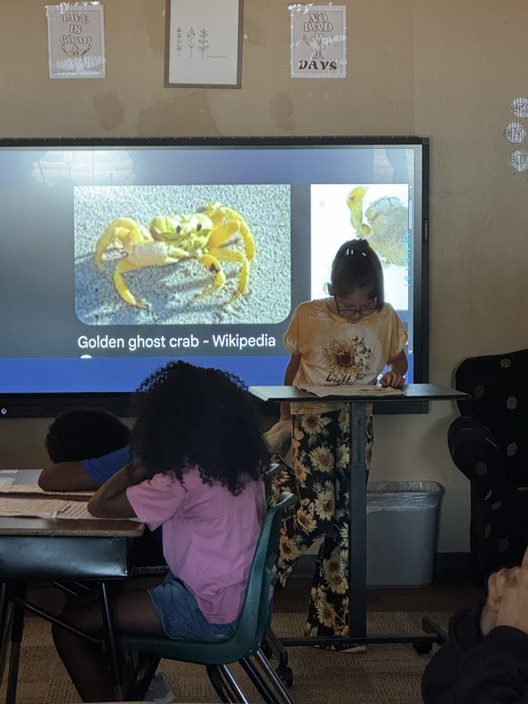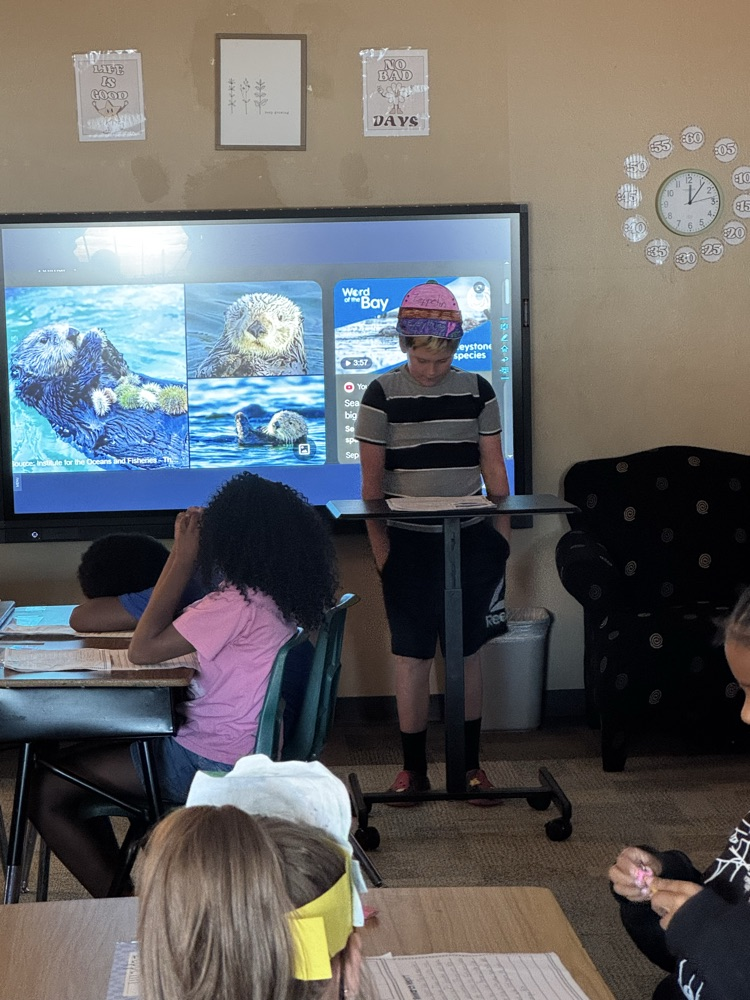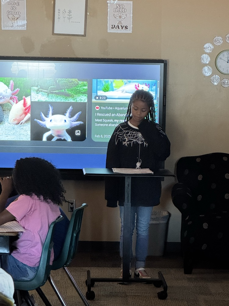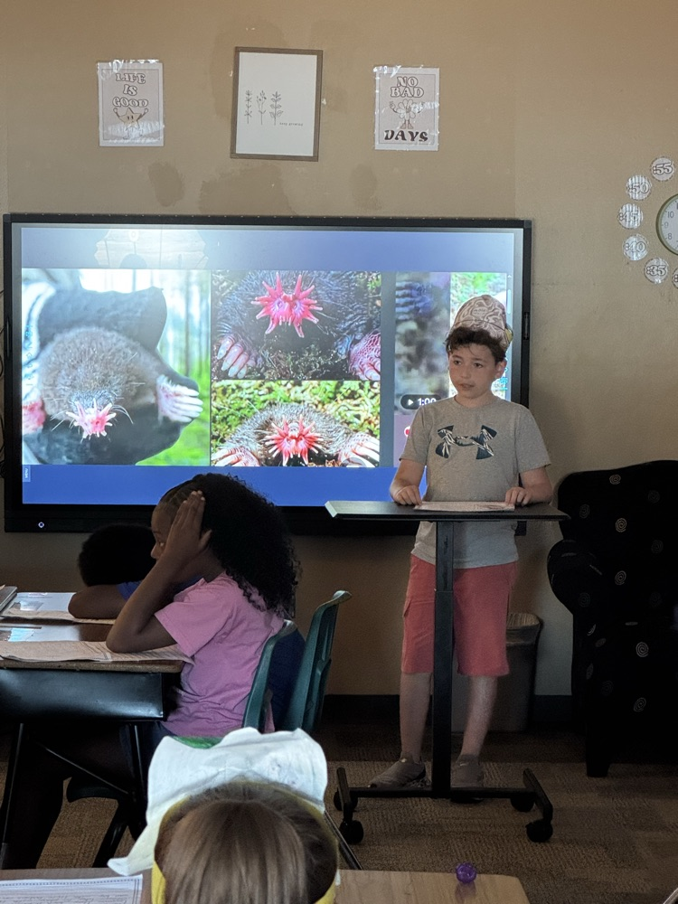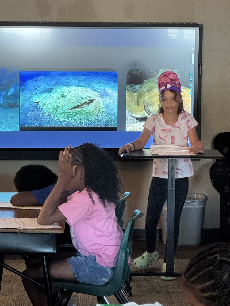 Mrs. Manning's 4th graders recently completed research projects. Requirements involved investigating all components of their animal, writing a multi-sentence report, and presenting their findings to the class. They bravely stood in front of their peers, principal, assistant principal, counselor, and teacher to share all they learned.