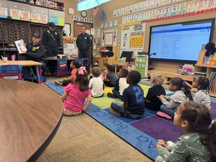 Thank you to Del City Fire Department for reading to Mrs. Watson and Ms. Meeks' classes today. Our Pre-K friends listened to the book "Lou" about a fire hydrant with a big job. Then, they discussed fire safety, what first responders do, and who to call when you need help.