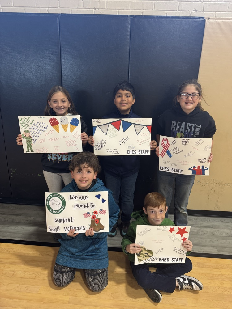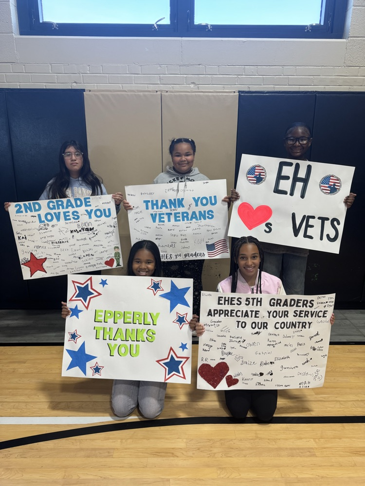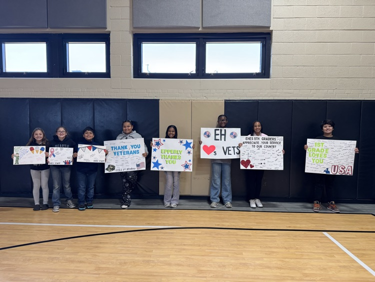 Great job to our choir students who sang, 5th grade helpers for doing a skit, and all students who participated in pledges and songs. As well as, Mustangs across multiple grades collaborated on posters and "Thank you" cards for us to share. We are proud to support Veterans at Epperly Heights.