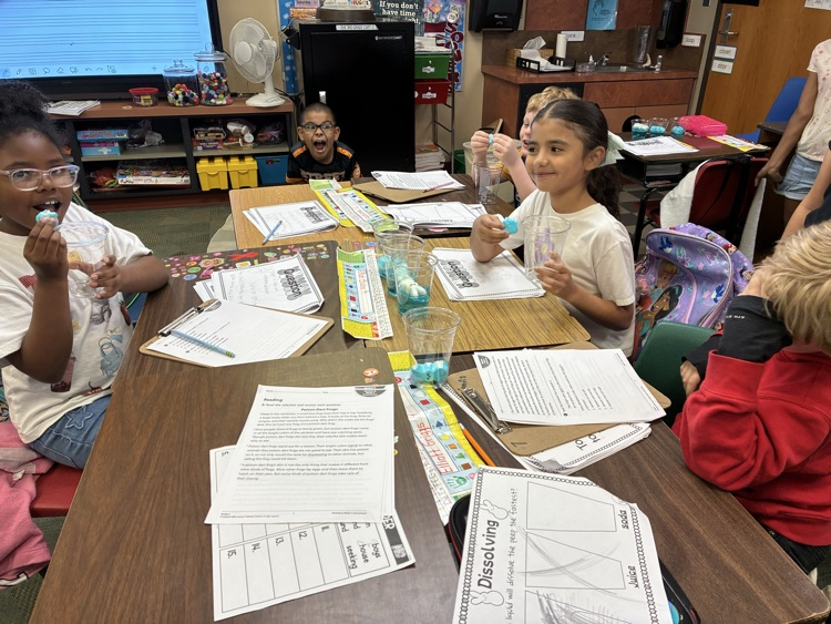 Happy Easter to our Mustang families who celebrate! 🐰 Mrs. Cranfill's class did science with a twist this week. Their task was to place peeps in various forms of liquid(sprite, water, and vinegar) to observe changes. Students were challenged to document their findings and they discussed why each peep reacted the way it did. Rumor has it... at the end they ate the control group! 😋