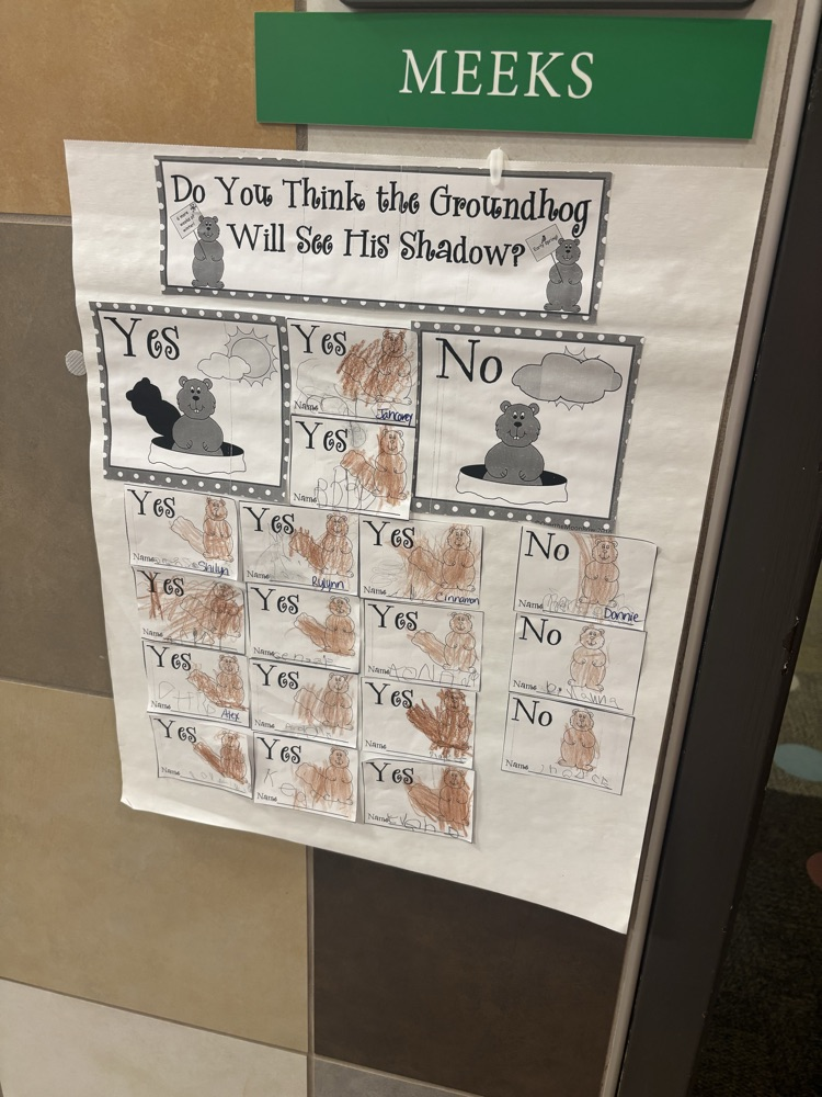 It's been a fun, shadow filled day in Pre-K! Students took a vote, discovered their own shadows, completed groundhog themed sentences, worked on fine motor skills, and even made hats!